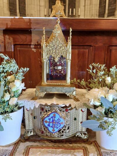 Jusqu’au 11 novembre, les reliques de Saint Martin circulent de doyenné en doyenné. Cette semaine, elles ont pu être vénérées dans notre paroisse. Commençant le mardi soir par une veillée autour des 3 charités de St Martin, rassemblant 40 personnes, la vénération s’est poursuivie le mercredi matin avec les enfants du catéchisme puis la messe, et le mercredi après midi pour clôturer un grand jeu sur l’histoire des reliques. Les jeunes ont pu confier une intention au Seigneur par St Martin, et … embrasser la relique !