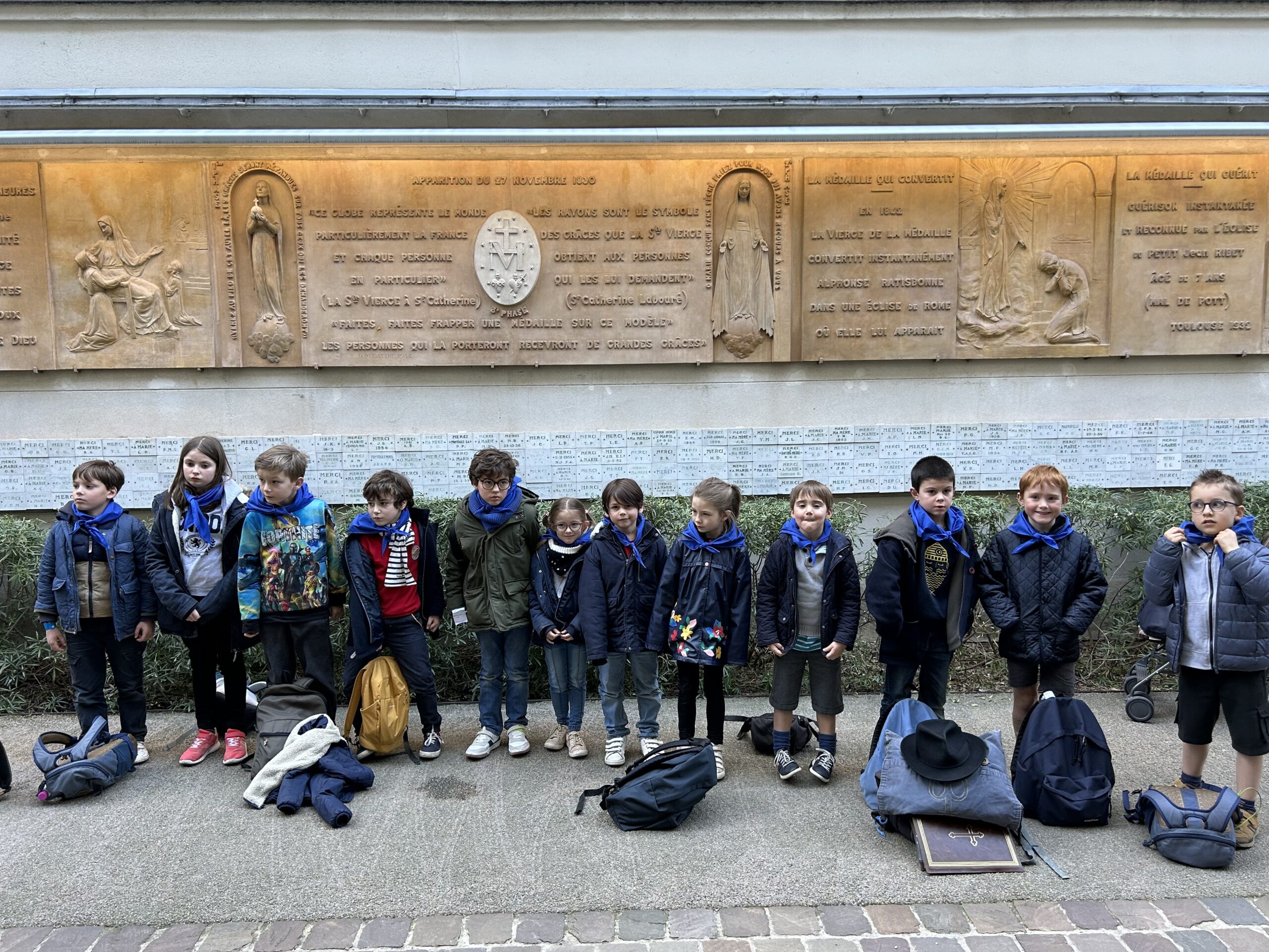 Chose promise, chose due ! En lançant le patronage début septembre, nous avions promis aux 12 enfants que nous ferions une sortie à Paris après Noël. Grâce aux multiples efforts fournies qui ont contribués à la réalisation du marché de Noël et du spectacle sur la Nativité, les 12 enfants du patronage et leurs accompagnateurs ont pris le TGV (en dépit de la grève SNCF !) pour monter à la capitale. Direction la chapelle de la Médaille Miraculeuse, pour un enseignement sur les apparitions de la Vierge en 1830 et la messe (où le nom du patronage de Chinon a été spécialement cité). Levé tôt, le petit déjeuner est bien loin quand nous sortons de l’office. Le pique-nique suivi de nombreux jeux de l’épervier dans le square de Sèvre-Babylone a réjoui le corps et le cœur de chacun (mais aussi des passants qui s’extasiaient de les voir s’amuser). Nous partons direction l’église de la Madeleine (et de ses immenses statues), afin de rejoindre ensuite le théâtre des Mathurins. Le clou de la journée est d’assister à une superbe représentation des « aventures de Pinocchio », mélange de théâtre, commedia dell’arte, musique et chant… bref féerique. Nous avons le temps, avant de reprendre le train à la gare d’Austerlitz, de descendre sur la place de la Concorde, de traverser la Seine, d’apercevoir la Tour Eiffel (de loin) et Notre Dame de Paris (de loin). Les deux heures de retour sont passées à la vitesse de l’éclair grâce aux dessins, portraits et autres petits bacs. La journée parisienne fut un beau succès, et la fatigue ne se fit ressentir qu’une fois chez soi !